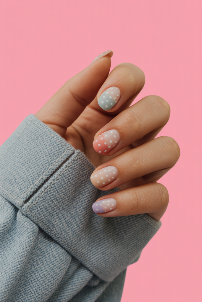 It works well for both casual and formal occasions. The dots add subtle detail without overwhelming the ombre effect.