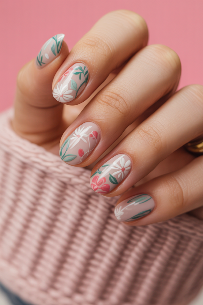 Soft floral patterns add a gentle touch to nail art. They often use light colors like pastels and pinks for a calm look. These designs suit many occasions and ages.