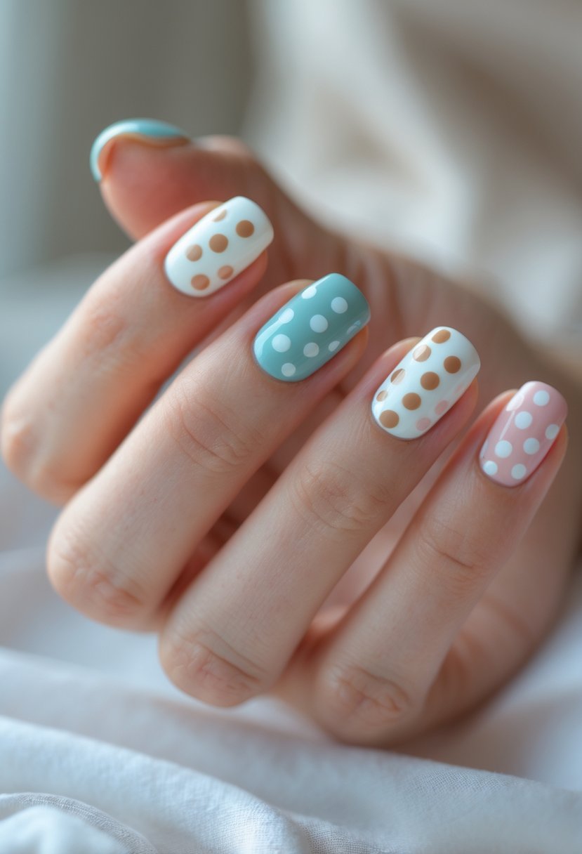 Polka dot accents add a playful touch to any manicure without being too bold. They work well on one or two nails, giving a simple yet stylish look.
