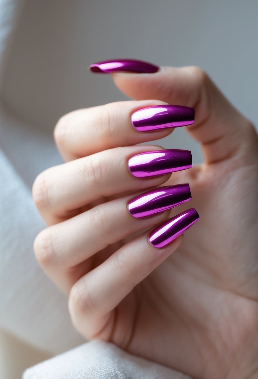 Metallic magenta tips add a modern twist to classic manicures. They balance bold color with a sleek shine. This design works well on both short and long nails, offering a stylish yet simple look. It pairs easily with neutral or nude bases for contrast.