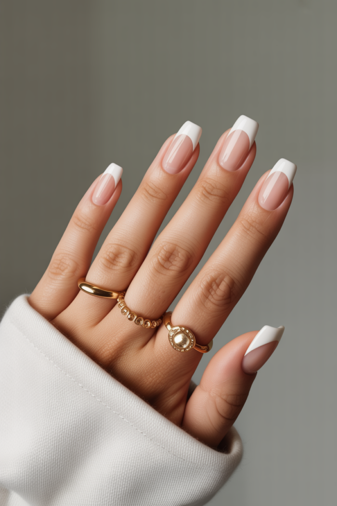 I love how French tips give structure to the nail without overwhelming it. The neutral base keeps things soft, while the white tip adds just enough detail to feel finished and elegant.