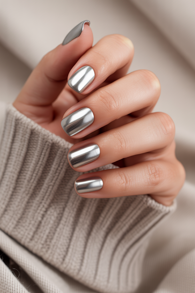 A neutral base with a subtle chrome accent is perfect if you want just a hint of shine. It adds interest without overwhelming the nail.