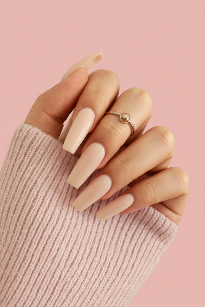 Coffin-shaped nails in neutral tones feel modern and sleek. The shape adds structure while the color keeps it simple.
