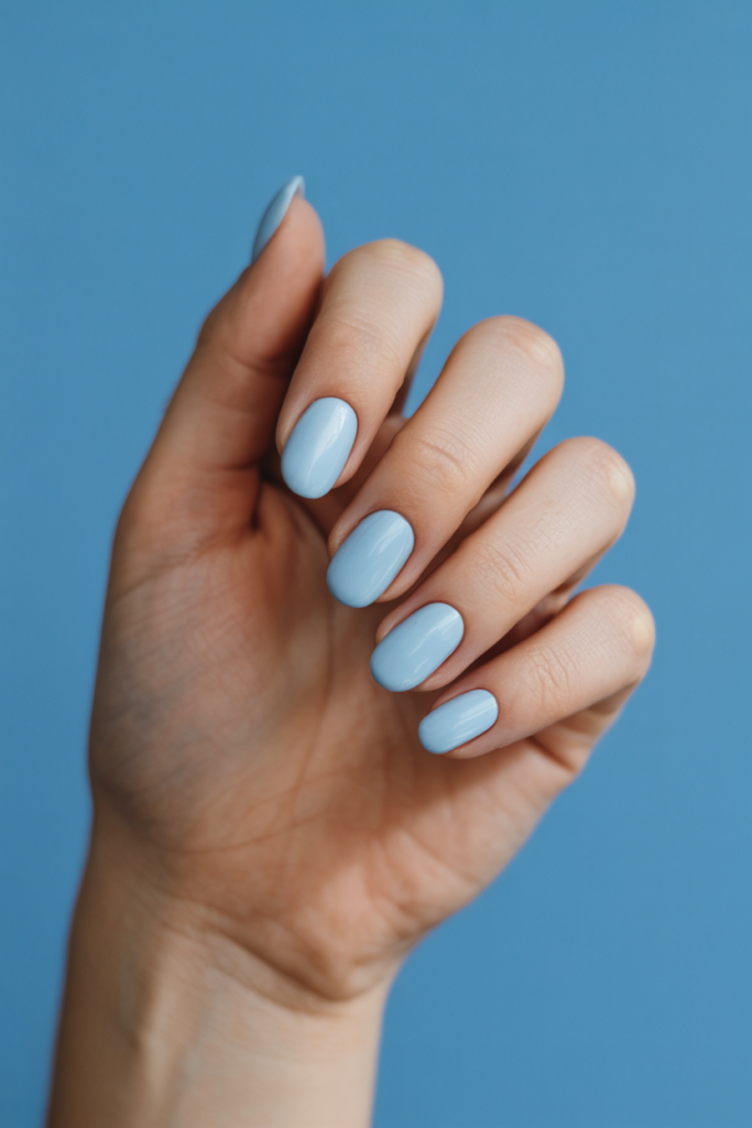 I love pale blue nails in winter because they feel seasonal while still staying minimal and wearable.
