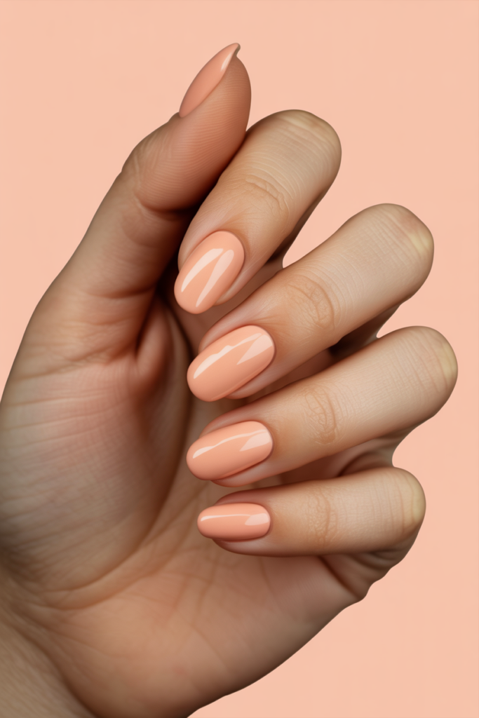Soft peach nails add warmth and brightness without feeling bold. Theyโre gentle and flattering.
