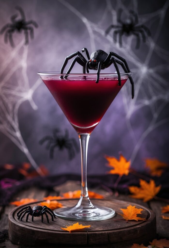 Shake ingredients with ice and strain into a chilled martini glass. Garnish with blackberries or a plastic spider on the rim. Dark, mysterious, and dangerously smooth.
