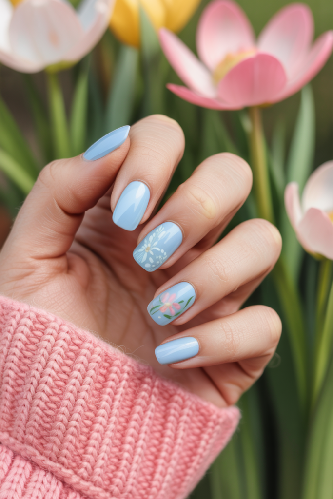 Baby blue nails feel crisp and refreshing, like a clear spring sky. This color adds brightness without feeling overpowering, which makes it perfect for simple spring designs. It looks especially beautiful with glossy finishes.