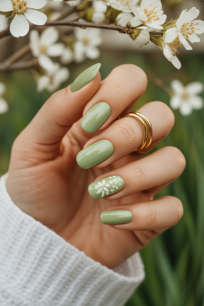 Green nails feel fresh and grounded, especially in spring. Soft sage, mint, or olive tones bring in color while still feeling calm and natural. These shades work surprisingly well with neutral wardrobes.