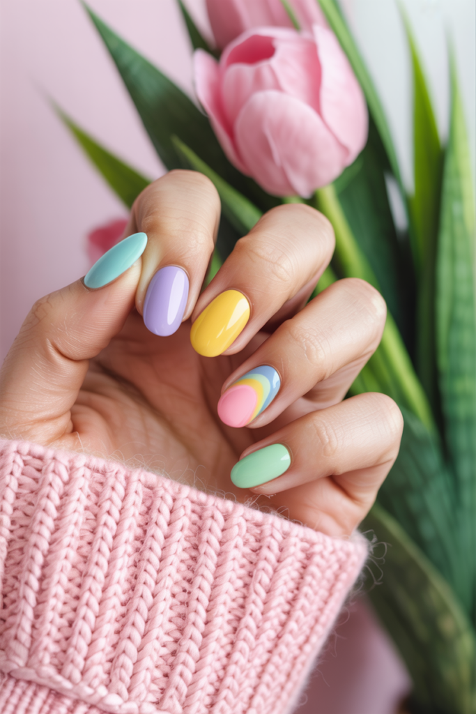 Pastel rainbow nails are great if you like variety and want something cheerful for spring.