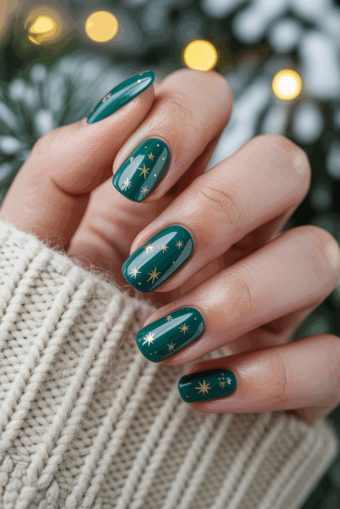 Glossy forest green nails offer a clean, polished look perfect for winter. The deep green color feels seasonal without being too bright.