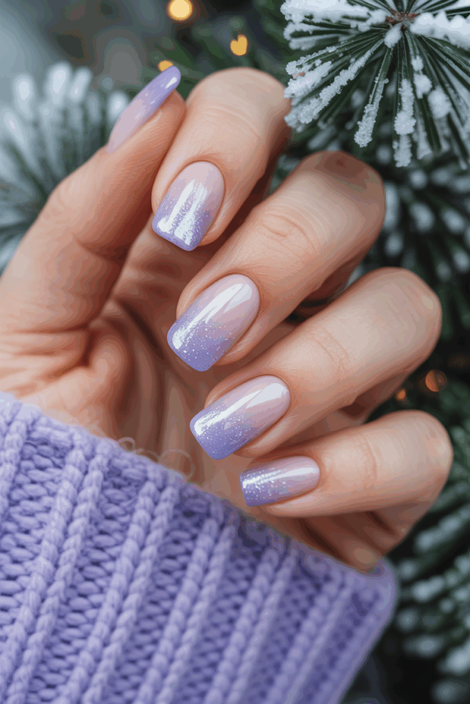 Soft lavender ombre offers a calm, gentle look that suits winter well. The fade from light to deeper lavender tones creates a smooth, elegant effect.