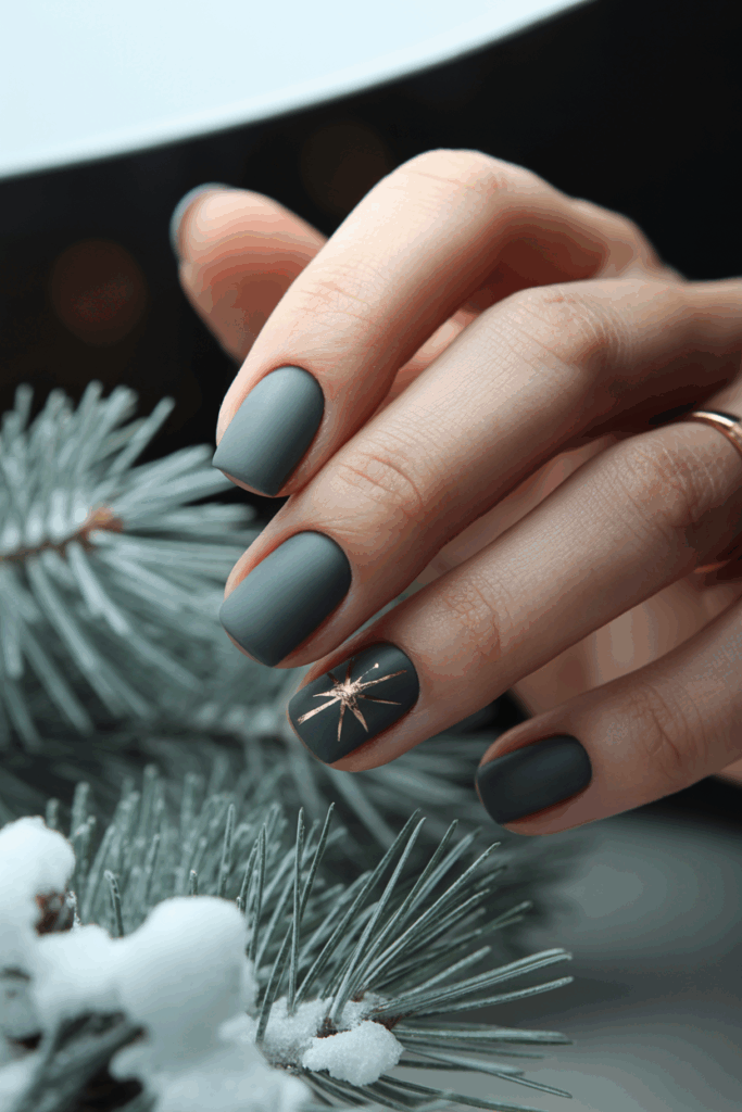 Charcoal grey matte nails offer a clean and modern look. The matte texture adds depth without shine. This finish works well for those who prefer a subtle but stylish winter manicure. It pairs easily with most outfits, making it a versatile choice.