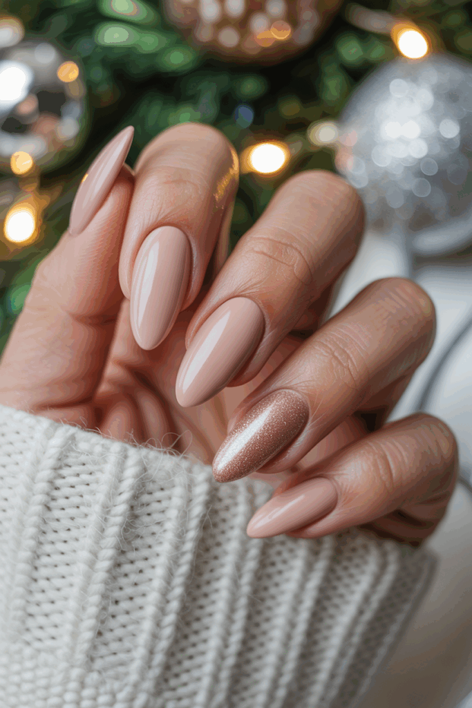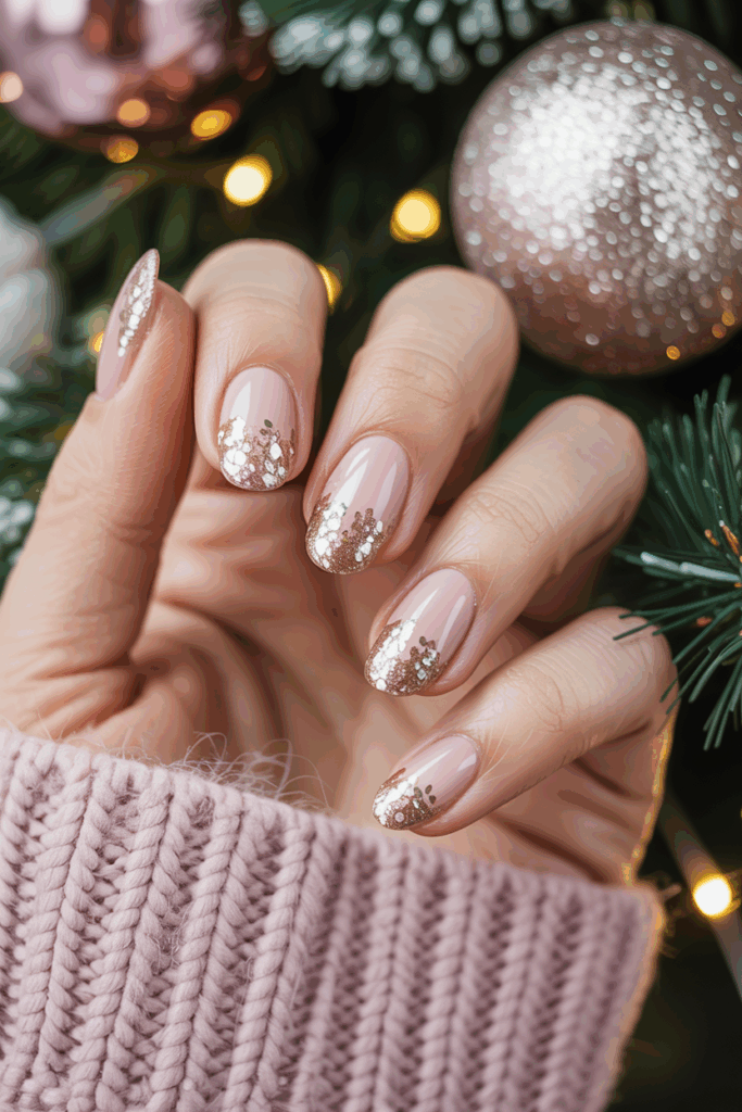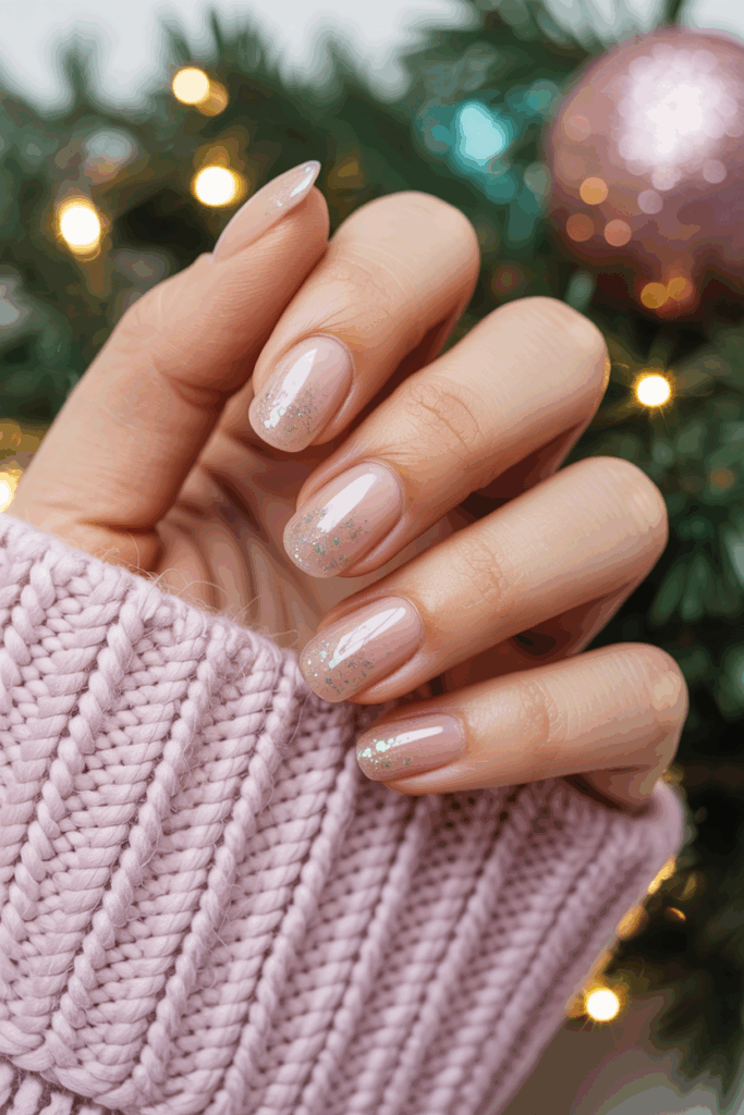 Sheer pink nails offer a soft, natural look perfect for the holidays. They create a clean base that complements delicate glitter accents without being too bold.