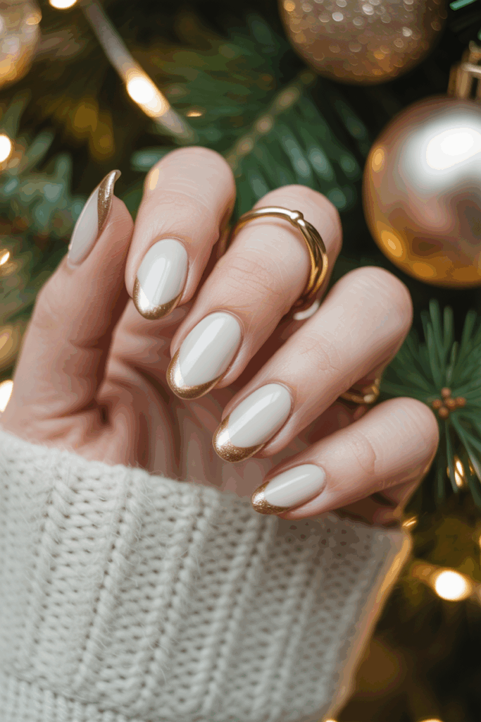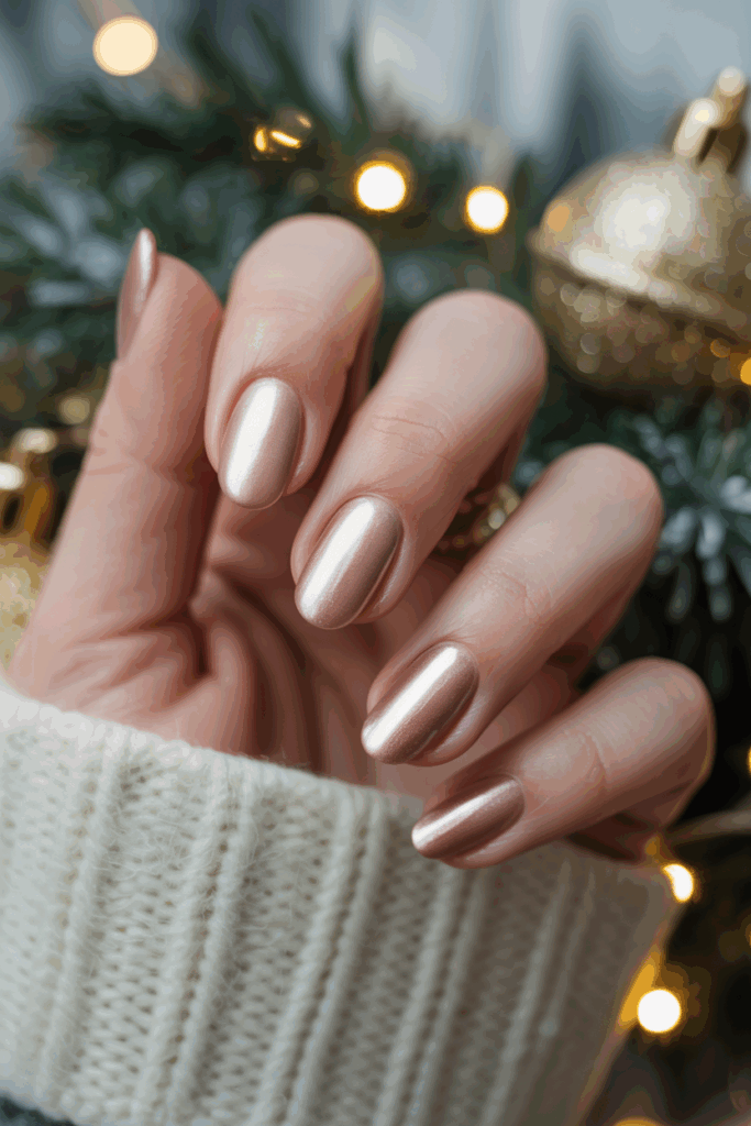 This look offers a soft, understated shine that fits well with subtle Christmas nails. The pale gold color is warm but not too bright.