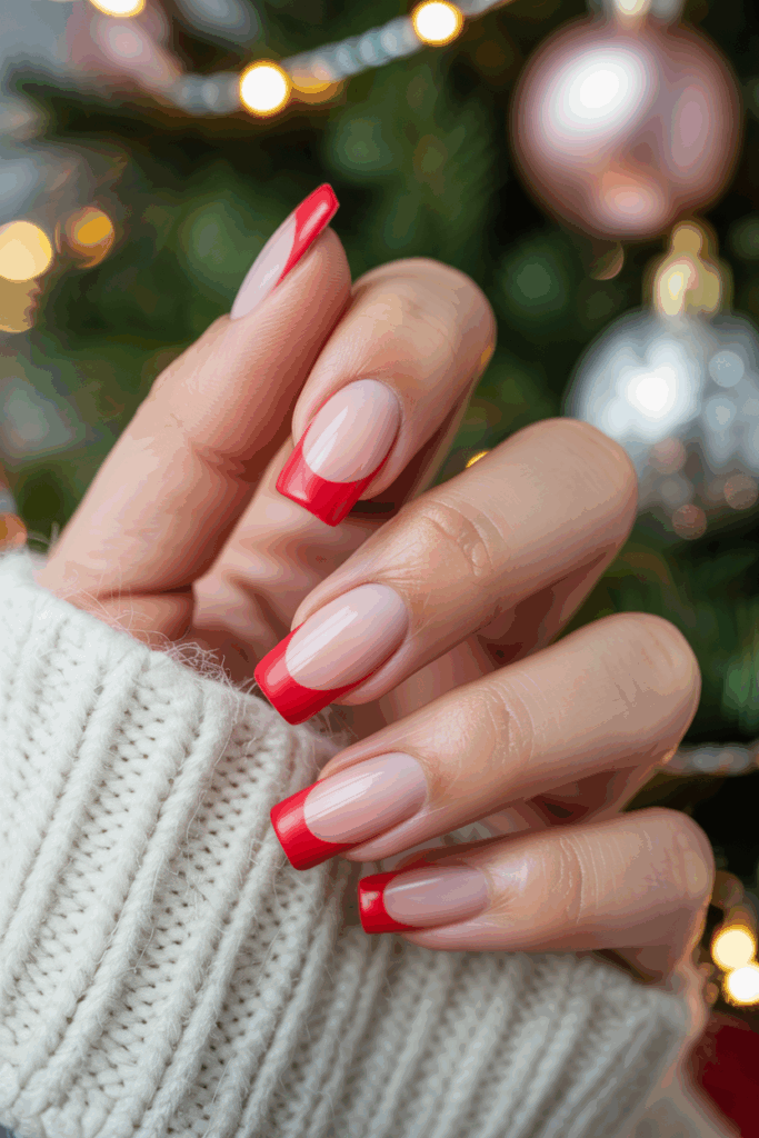 The base is usually nude or pale pink to keep the look clean and simple. It adds a festive touch that fits well with holiday style.