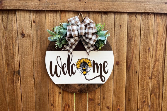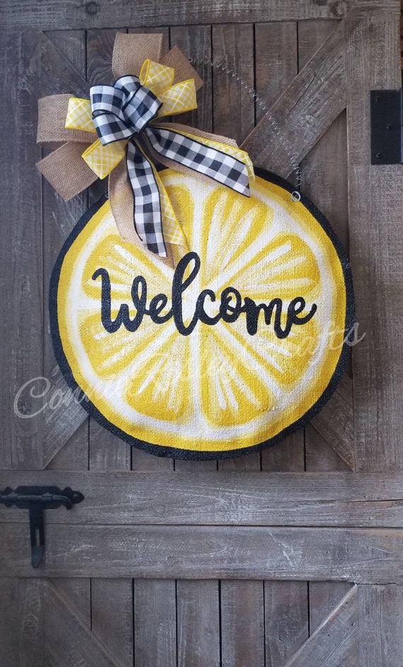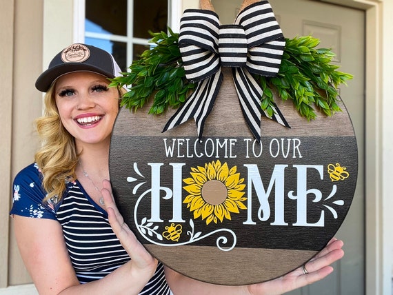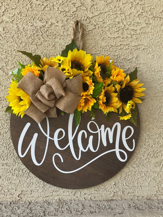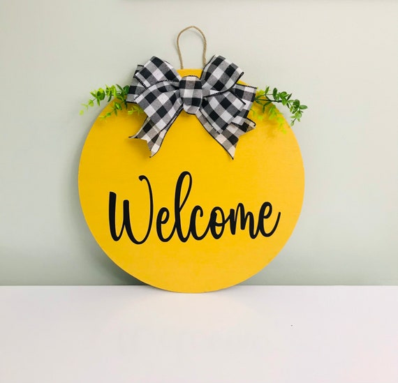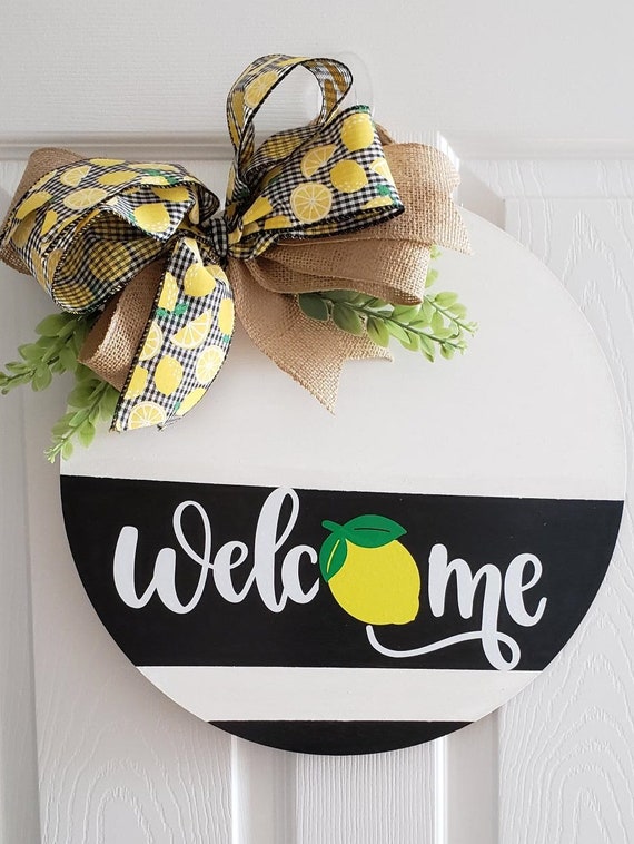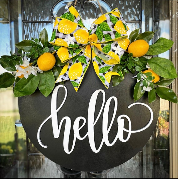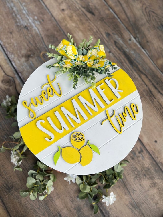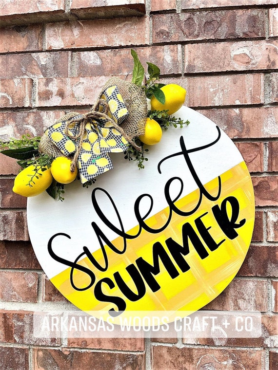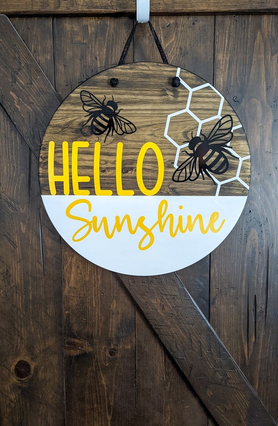 Use these bright yellow hello sunshine wooden door hangers with ribbons as your summer welcome decorations to say hello summer to your summer guests for 4th of July and all summer events!