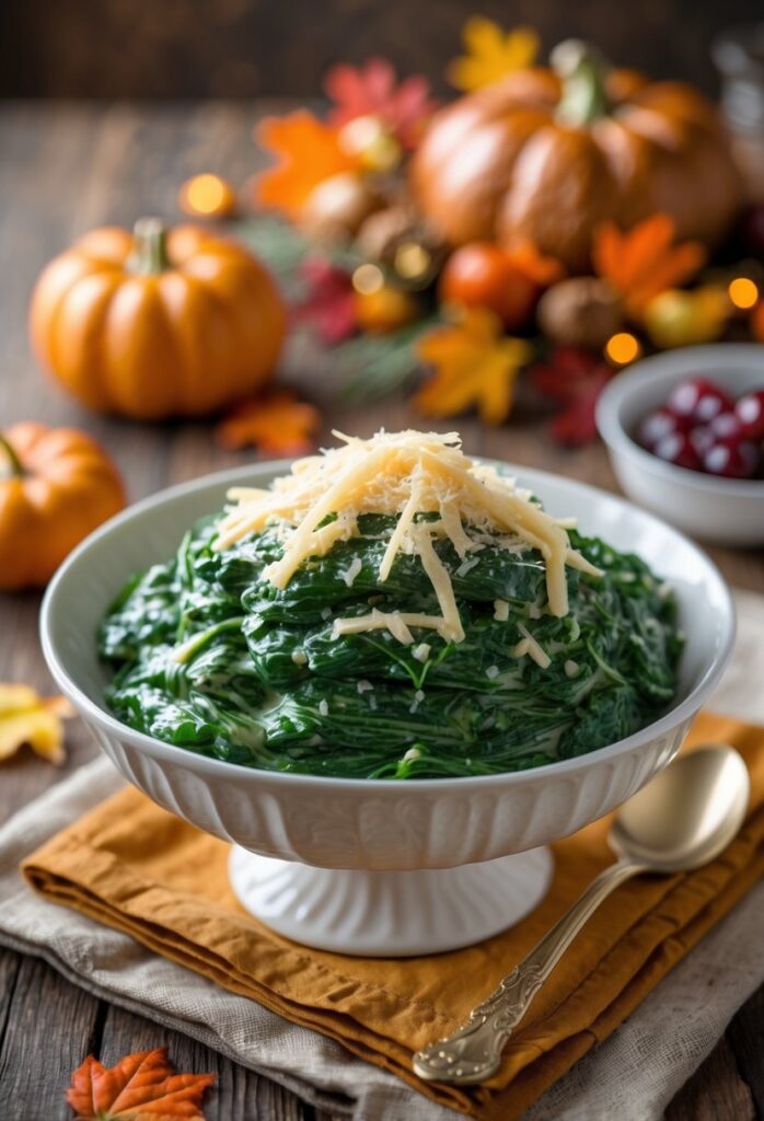 Creamed spinach with Parmesan is a classic side dish that fits well at any Thanksgiving table. It combines fresh or frozen spinach with a smooth, creamy sauce that highlights the rich flavor of Parmesan cheese.