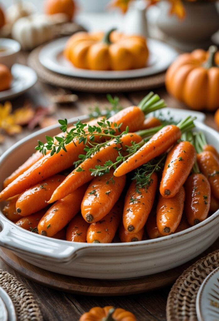 Glazed carrots with honey and thyme offer a simple, flavorful addition to any Thanksgiving meal. The natural sweetness of the carrots is enhanced by honey, creating a tender and vibrant side dish.
