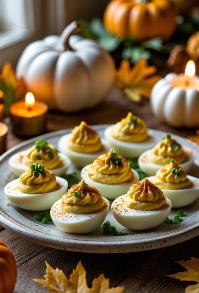 Classic deviled eggs remain a popular appetizer for Thanksgiving dinner. They are simple to prepare and use basic ingredients like hard-boiled eggs, mayonnaise, mustard, and a dash of paprika. This combination creates a creamy, tangy filling that complements many holiday dishes.