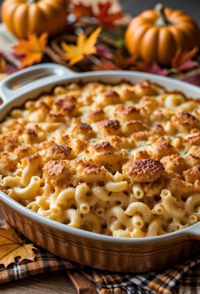 Baked macaroni and cheese is a classic Thanksgiving side that complements traditional dishes well. It combines tender pasta with a creamy cheese sauce made from a blend of cheeses for rich flavor.