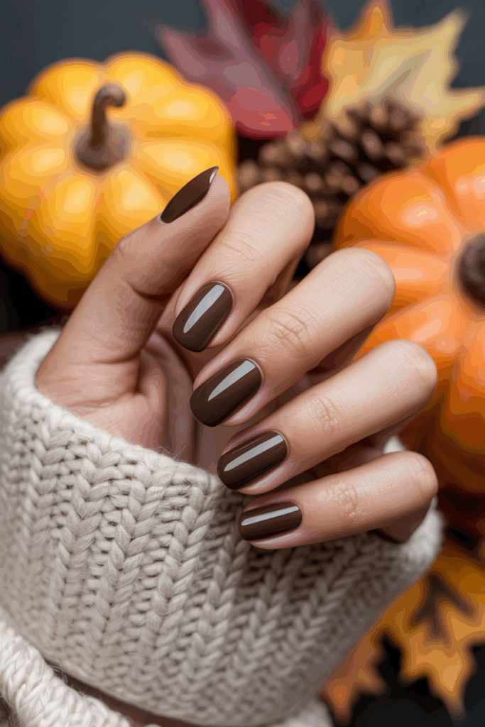This nail style uses a deep chocolate brown shade that looks rich and elegant.