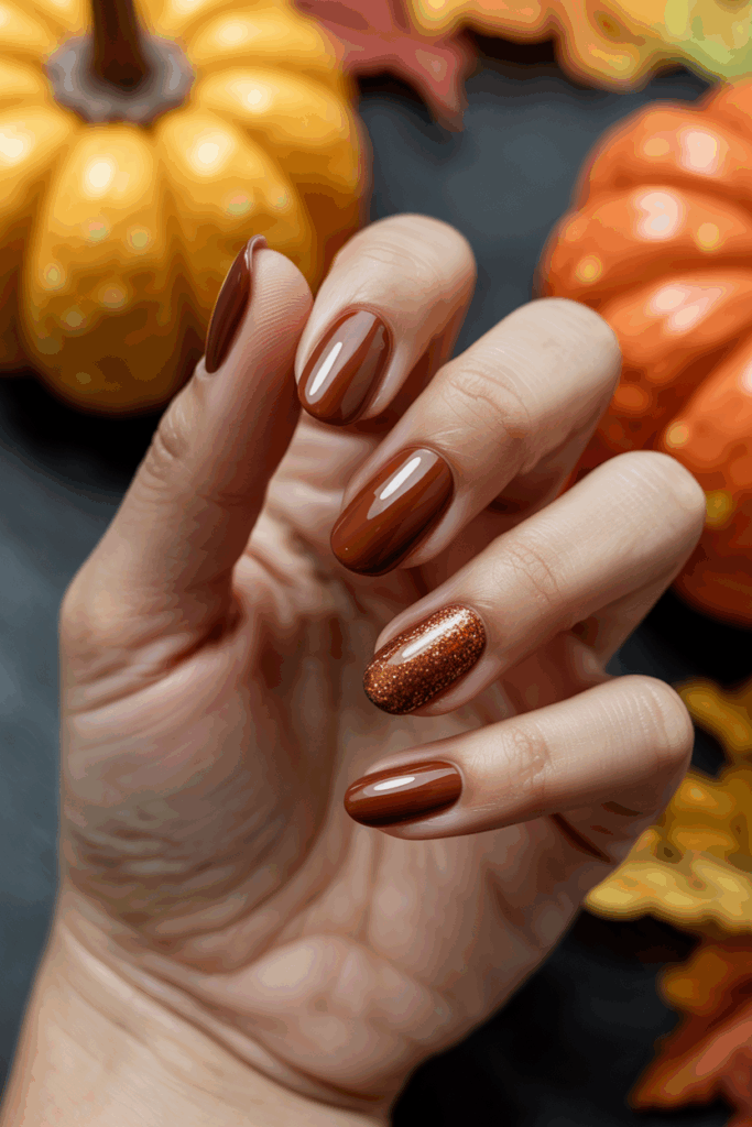 But short doesn’t mean boring. Not even close. Some of the cutest, most stylish fall nail ideas actually look even better in short lengths — warm browns, cozy pumpkin shades, tiny leaf accents, matte forest greens… all the good fall energy, but in a size that lets you live your life.
