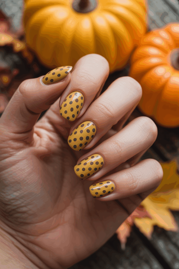 The white pumpkin dots add a simple, festive touch without being too bold. It works well on short nails for a clean, seasonal style.