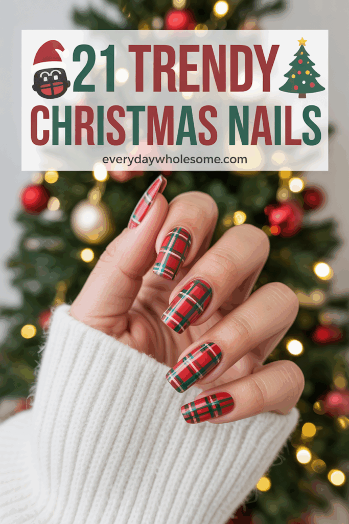 Bold red and green checks create a classic Christmas look. The pattern brings a festive, yet simple vibe. It works well on all nail shapes and sizes. This design suits those who want holiday nails without too much detail.