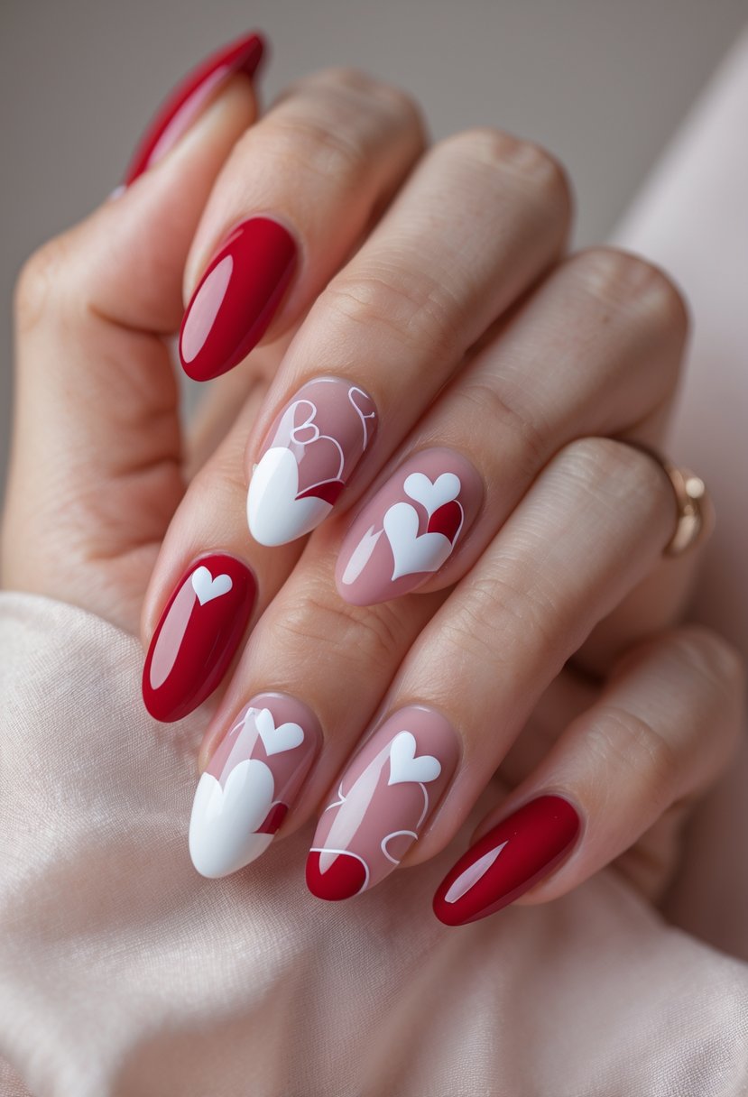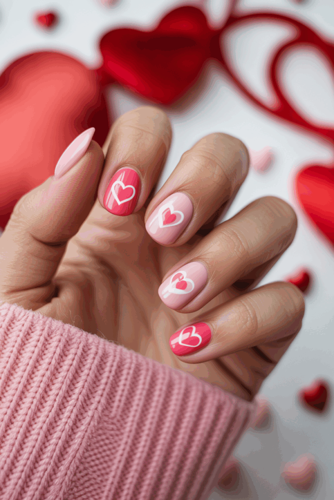 The look works well for Valentine’s Day while staying subtle and sophisticated. It suits those who prefer less bright but still festive nails.