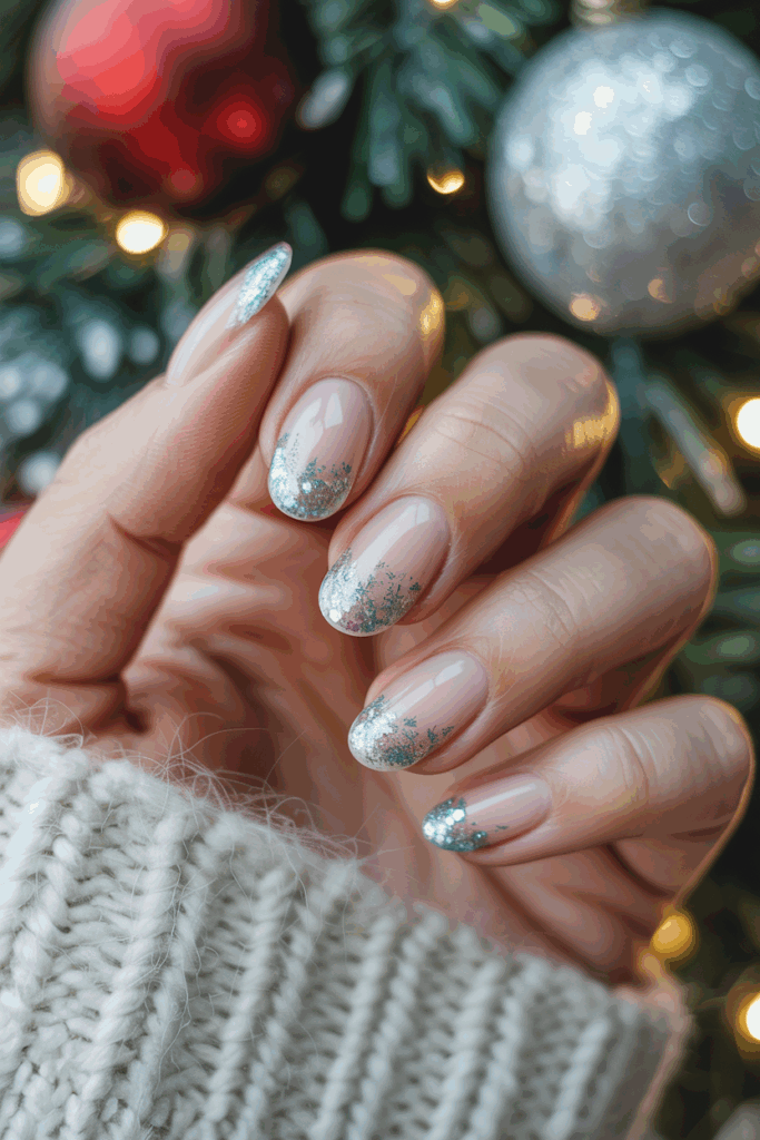 Adding light glitter or tiny snowflakes can enhance the winter theme without making it too busy. The style is elegant and fits well with holiday outfits.