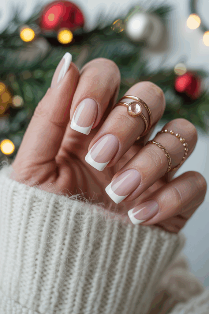 Matte white tips add softness while keeping nails clean and polished. It suits both casual and formal settings during Christmas.