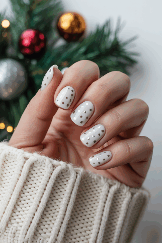 The silver dots catch light softly, making the nails appear elegant and festive. It suits those who want a refined holiday look that pairs well with any outfit. The style is easy to wear and works for both casual and formal occasions.