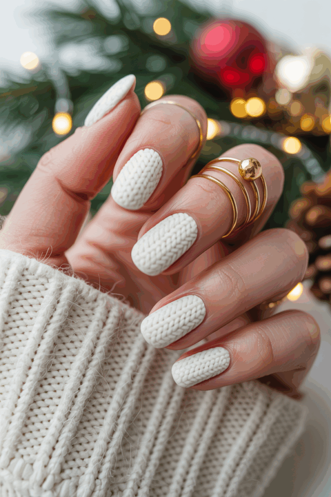 These nails are usually painted in white or soft shades to fit the Christmas theme. The texture adds a warm, comfortable feel without extra colors.
