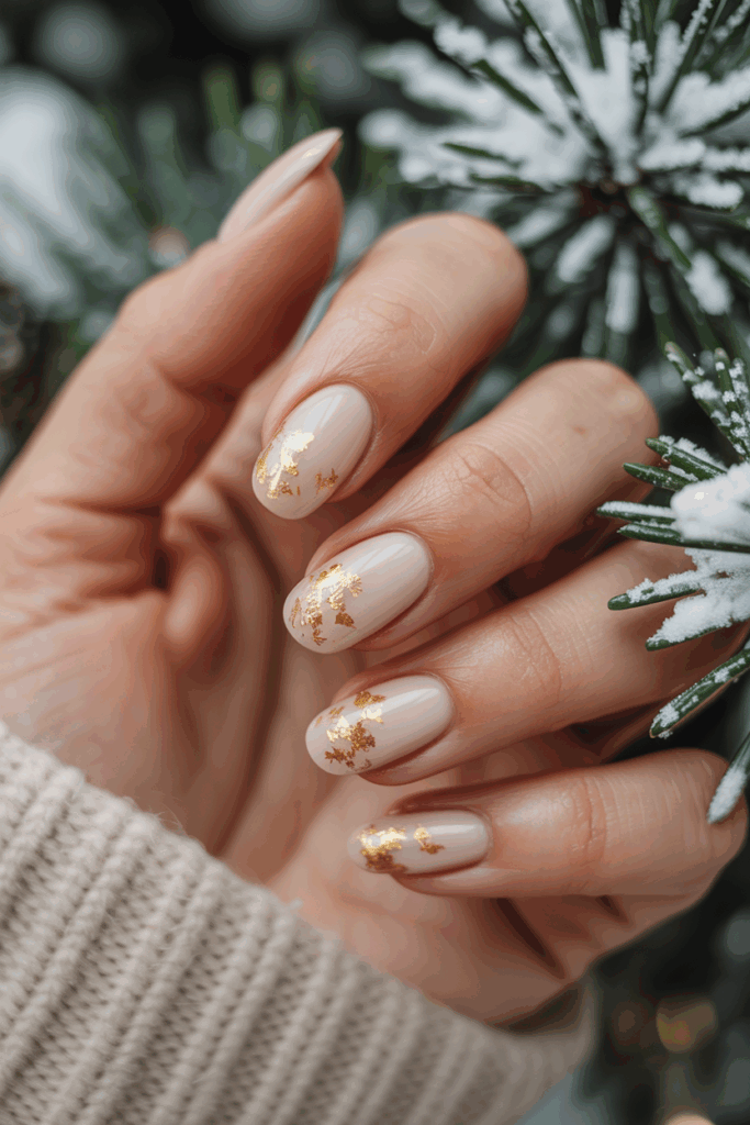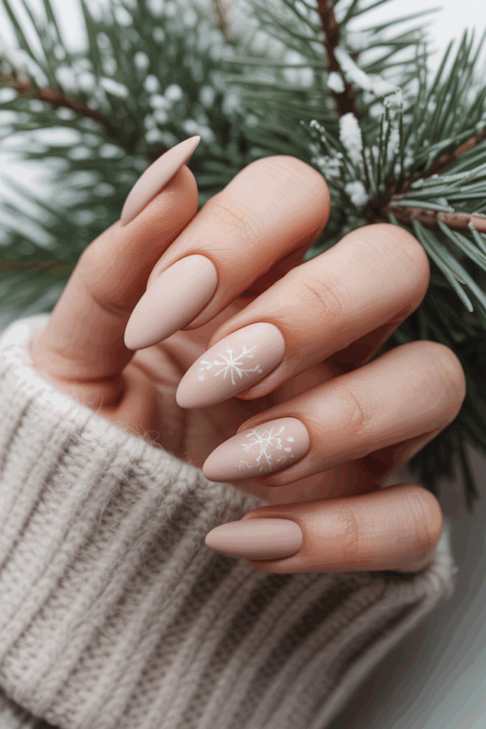 Matte nude almond nails offer a simple and elegant winter look. They suit many skin tones and blend well with cozy seasonal outfits.