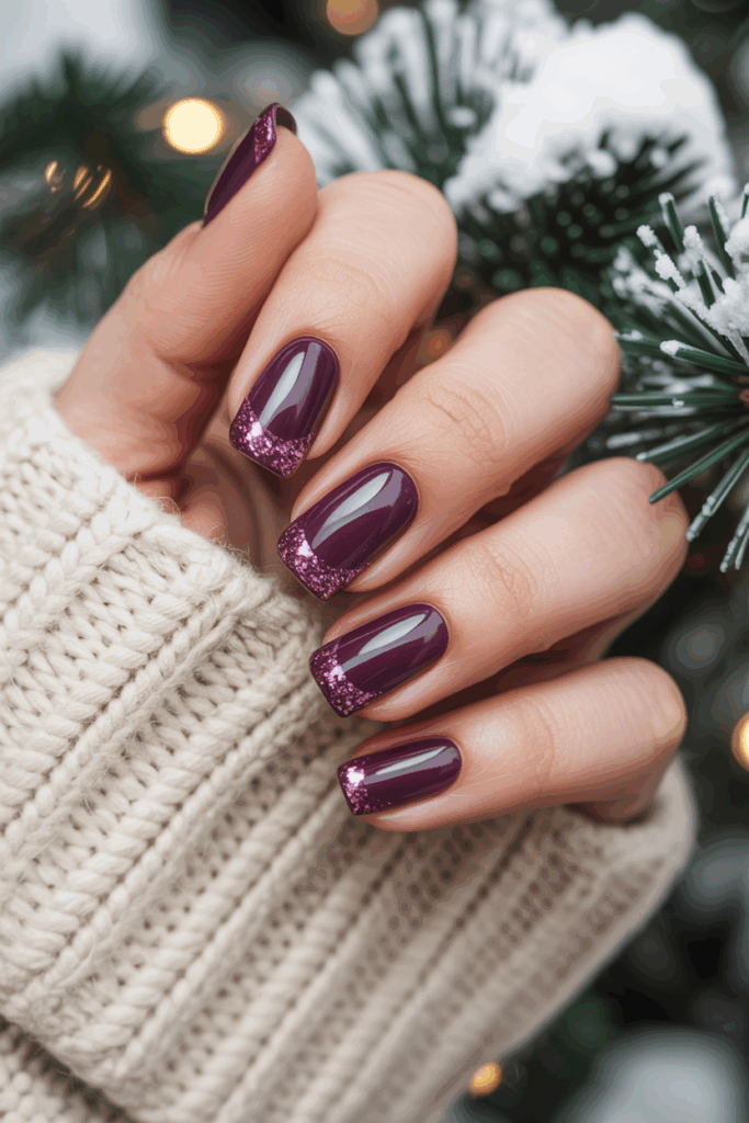 16) Deep Plum with Glitter Tips