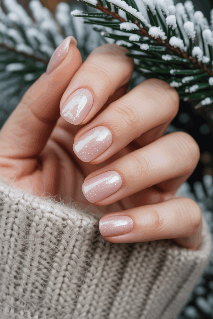 This design uses a soft pink base with a frosted finish. Tiny sparkles add a gentle shine without overpowering the look.