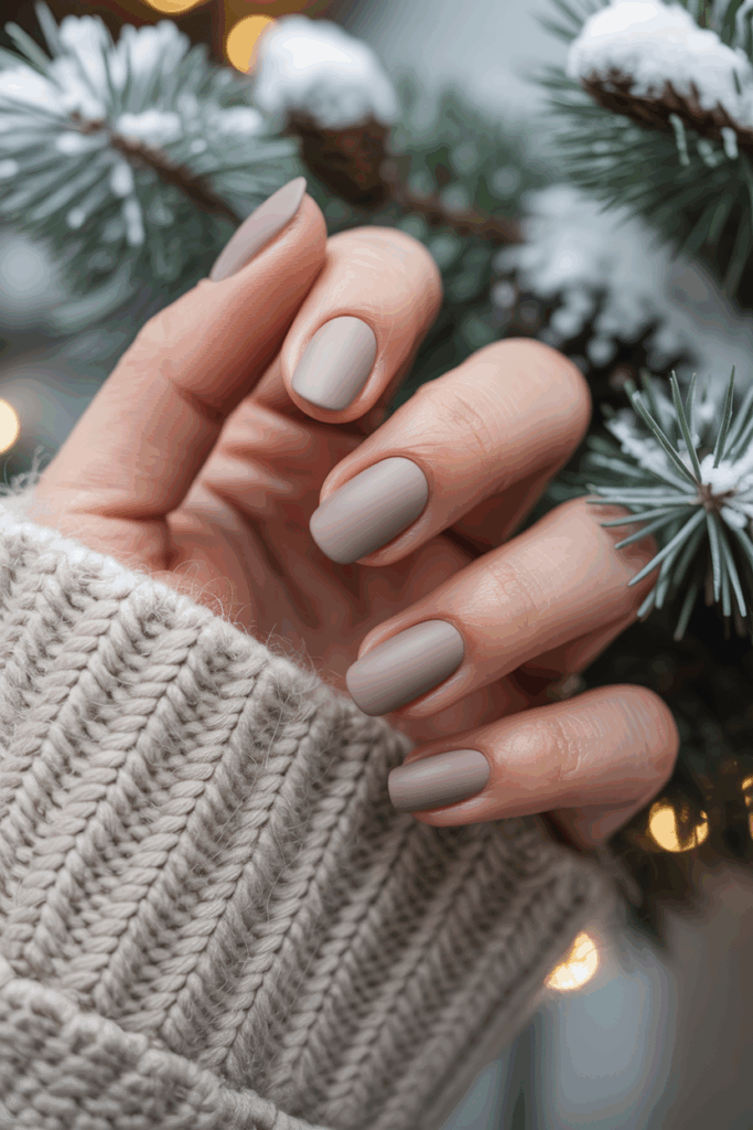 Warm taupe nails with a matte finish create a cozy, modern look.