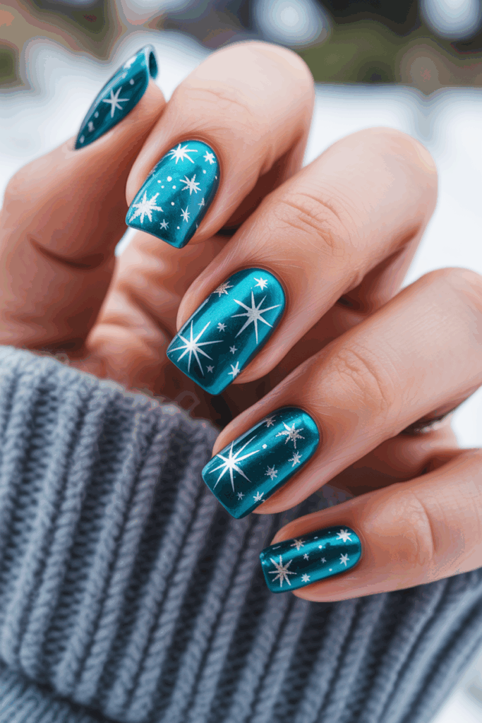 24) Shimmering Teal with Silver Stars