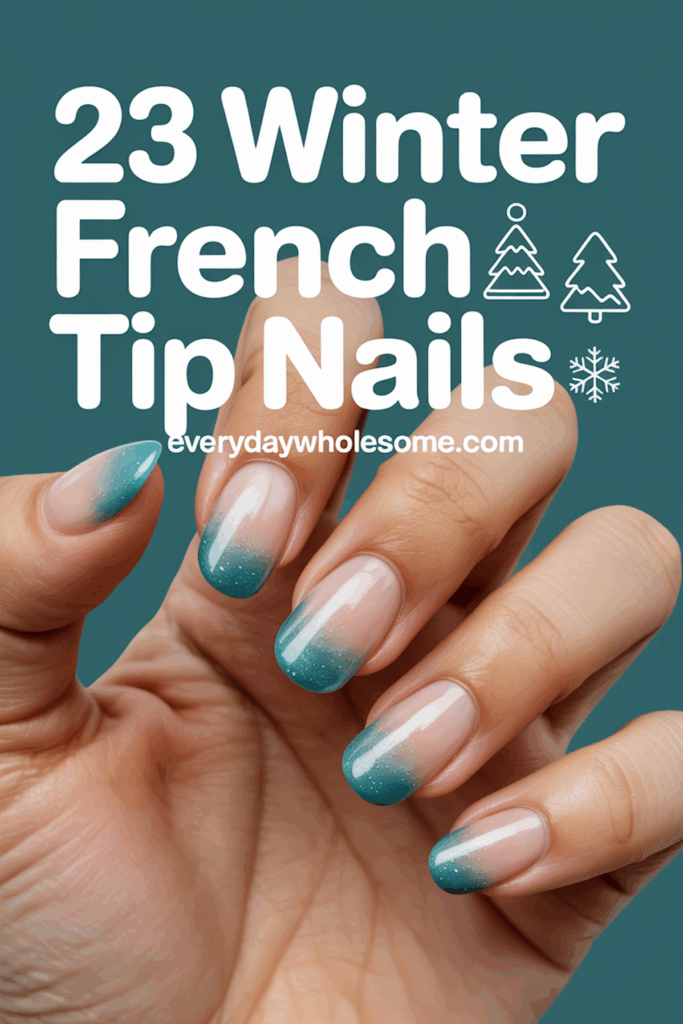This design blends teal shades in a smooth ombre effect on the nail tips. A subtle shimmer adds shine without being too bold. It works well for winter, offering a fresh take on classic French tips. The look is both elegant and modern.