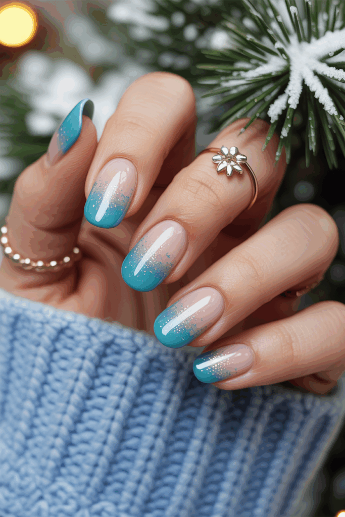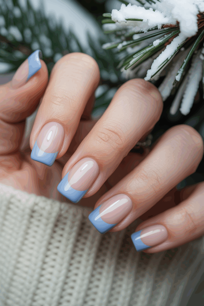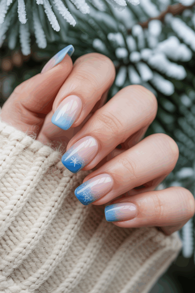 This design blends soft blue shades from light to darker tones at the tips. It creates a smooth fade that looks cool and fresh for winter.
