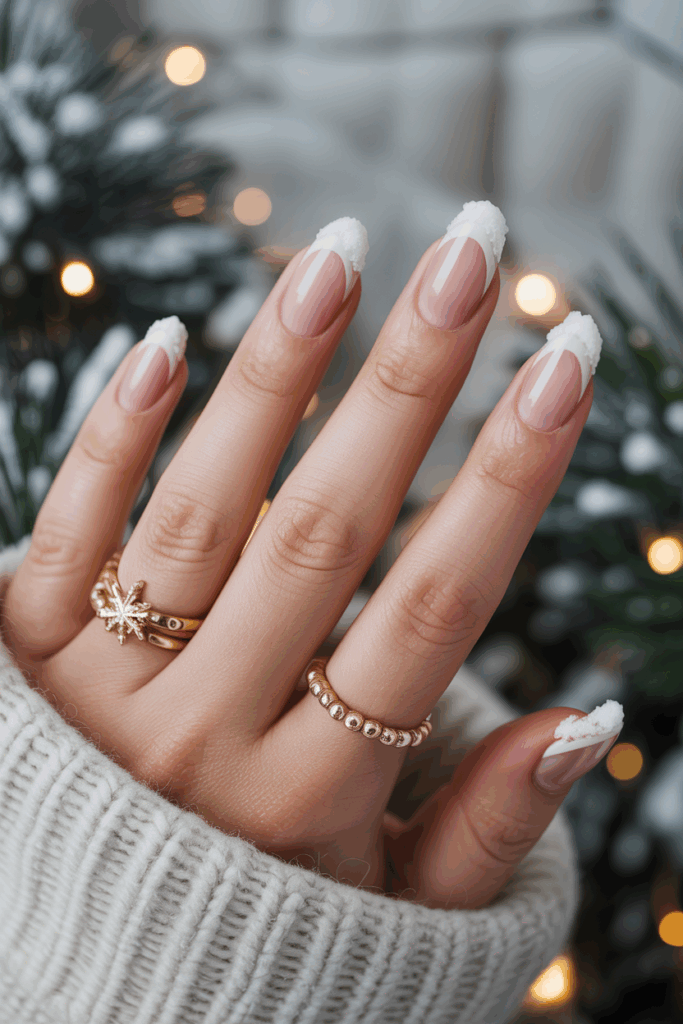 The tips look like freshly fallen snow, adding a subtle seasonal touch. This style pairs easily with any outfit or occasion.