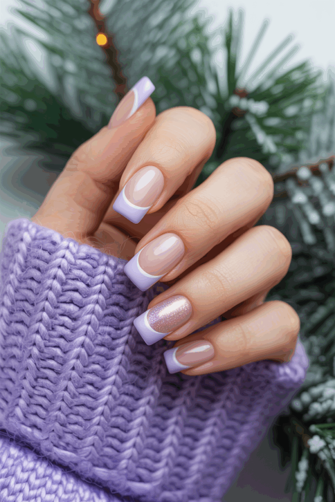 Frosted lavender tips add a soft, cool look to a classic French manicure. The muted purple shade fits well with winter’s calm, icy vibe.