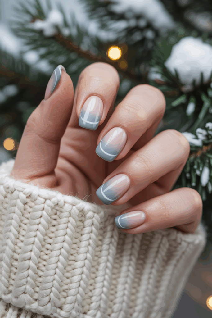 Soft gray gradient French tips offer a modern twist on the classic look. The nails fade gently from a natural base to a light gray tip. This design feels subtle and elegant, perfect for winter. It works well with all skin tones and adds a cool, calming touch to any style.