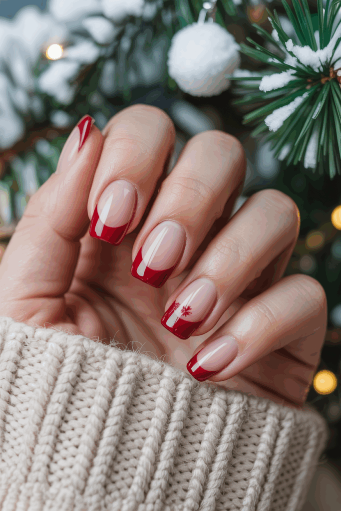 Winter berry red tips offer a warm, rich twist on the classic French manicure. They add depth while staying elegant and suitable for any winter outfit. This shade works well with both matte and glossy finishes for a fresh, seasonal look.