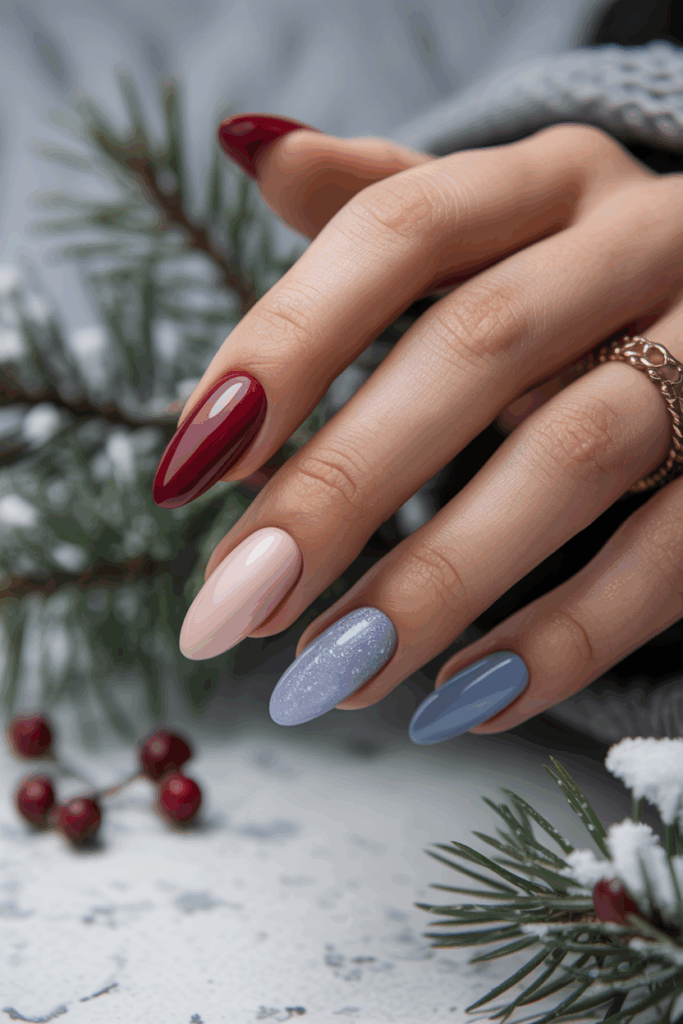 Classic deep reds remain a key choice for winter nails in 2025. They offer timeless elegance and work well with many skin tones. This shade adds warmth and sophistication, fitting both casual and formal looks. Many people prefer deep reds for their rich and bold appearance during cold months.