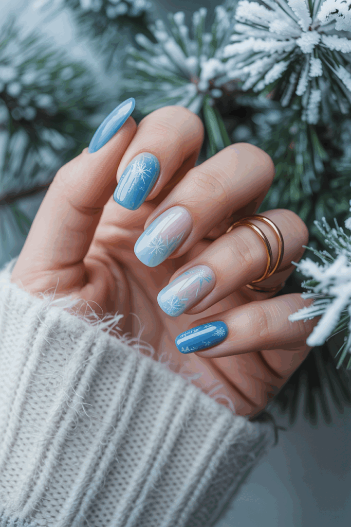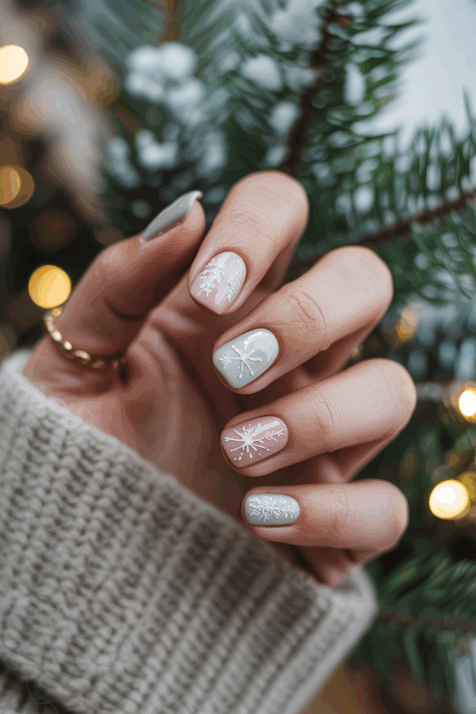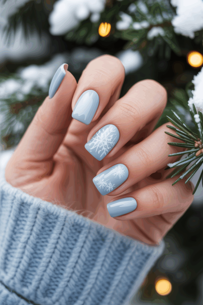 Subtle snowflake designs use soft colors and delicate patterns. They add a gentle winter touch without being bold. This style suits those who prefer elegance over flashy art. It works well for both short and long nails.