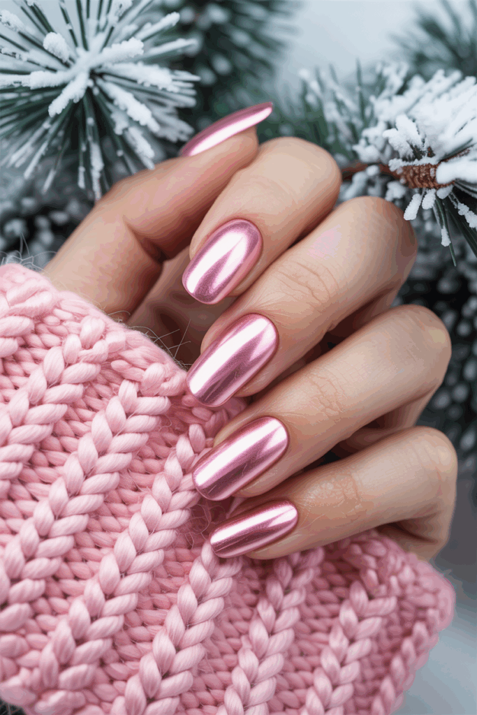 The pink chrome finish is a popular choice for winter 2025 nails. It combines a shiny, metallic look with soft or bold pink shades. This style adds a modern and elegant touch to any manicure. Many prefer it for its versatility and simple yet eye-catching effect.