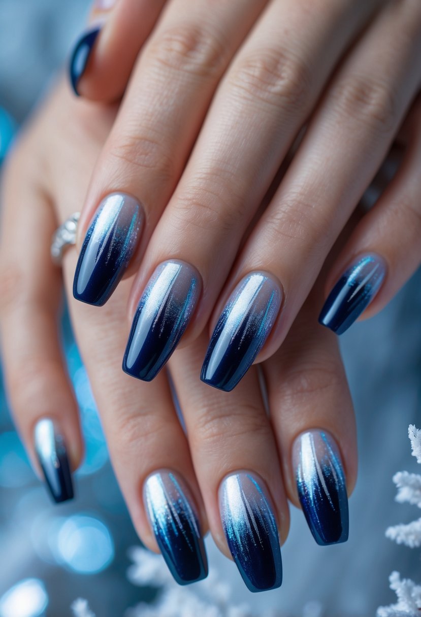 Shimmer accents add a subtle shine that enhances any winter nail look.