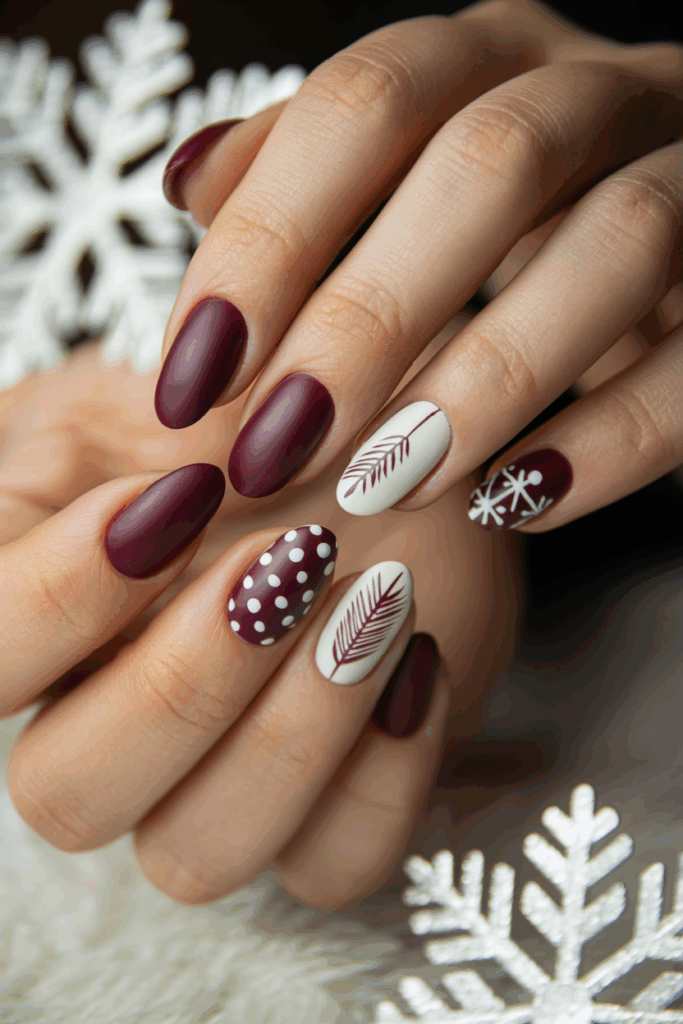 Matte burgundy nails offer a rich, velvety look that suits all nail lengths. This shade provides a stylish alternative to glossy finishes. It works well for both casual and formal winter settings. Many find it easy to apply at home, making it popular in 2025.