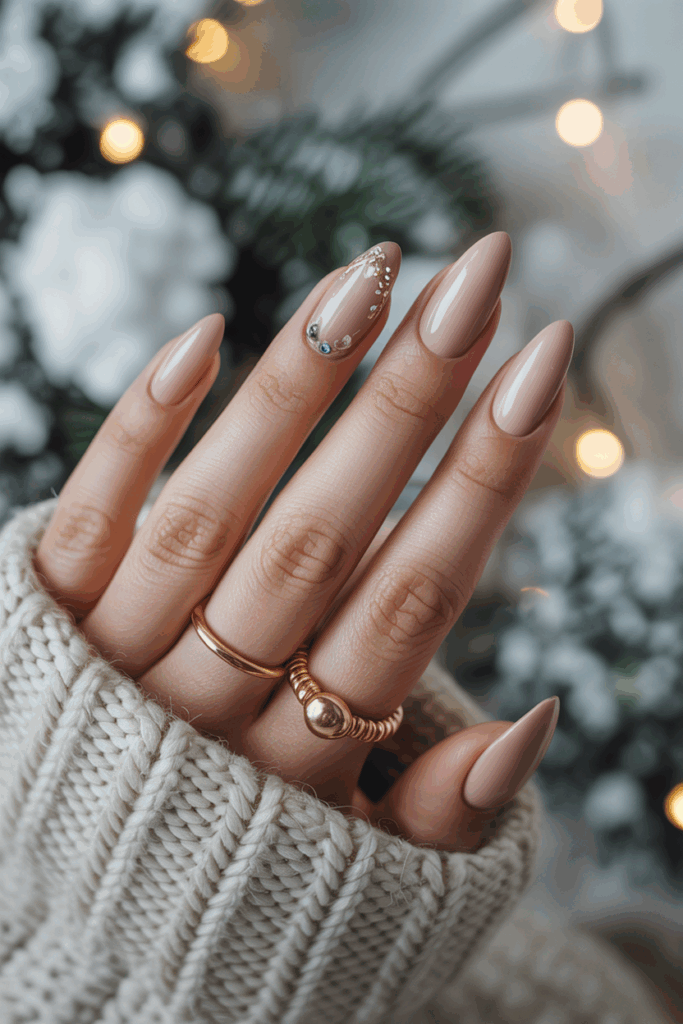Almond-shaped nails in nude tones offer a simple and polished look. They combine elegance with ease, making them suitable for daily wear.